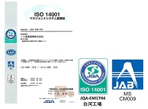 2001(平成13)年8月に白河工場においてISO14001の認証を取得。環境マネジメントシステムに基づいて、事業活動における環境負荷の低減に努めています。